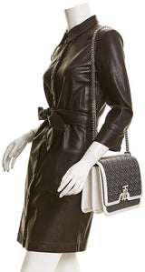 Medium Quilted Monogram Leather Shoulder Bag in black and white leather with silver-tone hardware and monogram accent Interior design details: leather lining, interior pockets Measures 10in wide x 7.5in high x 2.5in deep Removable shoulder strap drops 22in Fold-over flap with magnetic closure Please note: All measurements were taken by hand and are approximate; slight variations may occur. Our products are 100% genuine. In some cases we purchase merchandise from trusted independent suppliers and not directly from the brand owner. In all cases we stand by the authenticity of every product sold on our site.