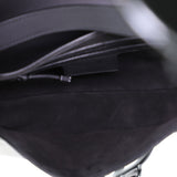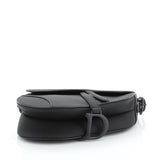 The black ultramatte calfskin style is embellished with tonal metal hardware. The Saddle bag may be carried by hand or worn over the shoulder and can be customized with different shoulder straps.