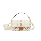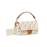 Iconic Baguette bag made of undyed canvas with à jour embroidered FF motif.