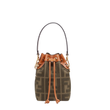 Small Mon Tresor bucket bag with drawstring fastening and metal decorations in the Fendi logo shape.