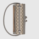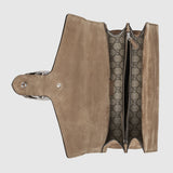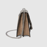 A structured GG Supreme canvas bag with our textured tiger head closure-a unique detail referencing the Greek god Dionysus, who in myth is said to have crossed the river Tigris on a tiger sent to him by Zeus. The sliding chain strap can be worn multiple ways, changing between a shoulder and a top handle bag. Pieces with versatile ways to wear and style embrace each person who is part of the House’s individual spirit.