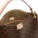 The Pre Loved Graceful PM hobo in classic Monogram canvas is a lightweight, roomy bag to carry every day. Natural cowhide leather detailing and golden hardware add a refined touch. The body-friendly design combines with a supple, flat handle for stylish and comfortable over-the-shoulder wear. The magnetic closure and zipped inside pocket keep belongings secure.