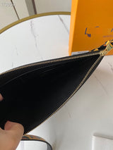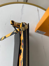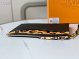 This LV piece is crafted of classic Louis Vuitton monogram on toile canvas with leopard print. This pochette opens with a polished brass top zipper to a black microfiber interior with card slots and a patch pocket.