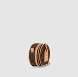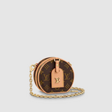 The Petite Boite Chapeau necklace does double duty as a stylish jewel and a mini-pouch for tiny treasures. Made from Monogram canvas with a removable chain, it can be worn around the neck or cross-body. The interior, lined with Malletage-print leather, is fitted with two gusseted compartments. The name tag adds a signature touch.