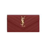 MONOGRAM LARGE FLAP WALLET WITH INTERLACING METAL YSL INITIALS AND QUILTED OVERSTITCHING.
