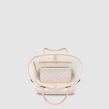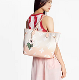 This Neverfull MM tote bag is made from Monogram Giant canvas in a gradient pastel colorway and is accessorized with a leather flower charm, perfect for the events. This By the Pool Summer collection of LV offers handbag with side laces tighten for a sleek silhouette or loosen for a more casual look.