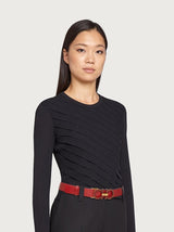 The perfect plus one for special occasions and elegant soirées, this belt in supple calfskin leather presents the signature Gancini buckle embellished with crystal studs for a touch of sparkle. The adjustable length ensures a personalized fit, while the palladium-tone logo plaque adds an unmistakable finishing touch.