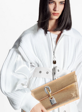 LV Clutch comes with its unique parallelogram shape, the Blade Clutch in shiny Epi grained leather takes the evening bag in a bold new direction. The distinctive closing system evokes both the nautical chain found on the Twist bag and the House’s iconic padlocks. The inside is lined with soft lambskin and includes a pocket with a small mirror.