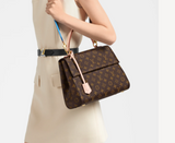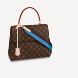 A colorful leather strap lends a lively twist to this Cluny MM handbag, crafted from classic Monogram canvas. Worn over the shoulder or carried in ladylike fashion by its top handle, this bag is designed for busy lifestyles. It opens wide for easy access to the smartly organized interior, while the magnetic flap and zipped inner pocket keep belongings secure.