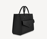 The Lockme Monochrome Tote MM offers the ideal balance of fashion and functionality. Made from soft grained calfskin, it is accented with a tonal, matte-finish LV turn lock for a chic, seamless look. Sized to hold paperwork, a laptop and daily essentials, this refined piece can be carried by the top handles or worn over the shoulder on its detachable strap.
