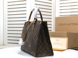 Molded from Monogram Giant material, the Onthego handbag is however striking as it very well might be down to earth. A Monogram Reverse example on the sides and handles makes an up-to-date contrast in shading and scale. With its liberal limit, shoulder ties and notorious Toron top handles, this flexible GM model is an ideal sack for regular wear.Top Quality non Authentic.