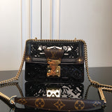 The LV Wynwood chain bag unites three emblematic House materials: glossy, glamorous Monogram Vernis patent leather, textured Epi leather and Monogram canvas. The result is a modern classic, an essential piece for an elegant woman’s handbag collection. Accented with a substantial golden S-lock and a long sliding chain that adapts to shoulder or cross-body wear.