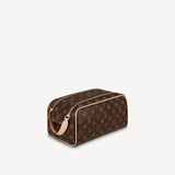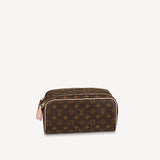Super travel companion, this signature Dopp kit is crafted from classic Monogram canvas and trimmed with natural cowhide.A zipped pocket for smaller items. The wide leather handle ensures a comfortable carry.