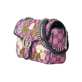 Pink and blue diagonal matelassé GG canvas with floral appliqué
