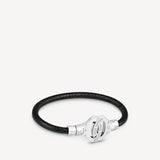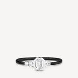 The Archive Double bracelet features interlocking ovals inspired by the handles on the House's iconic travel trunks. The bracelet is crafted from durable Taïga leather cord and the centerpiece features a delicately engraved Louis Vuitton signature. The easy-close clasp highlights the LV Initials and rivets in a further celebration of House motifs.