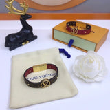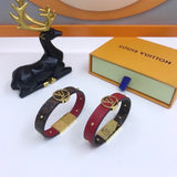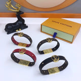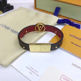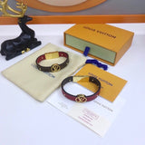 Characterized by iconic Monogram canvas and gold-color metal trunk studs, the LV Circle reversible bracelet pays homage to Louis Vuitton's history. Smooth and refined calf leather, along with a metallic clasp, creates a polished look. An LV Circle engraved on the front adds a final House hallmark to this design.