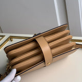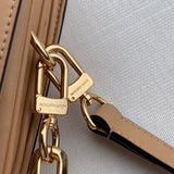 The Rendez-Vous can be worn cross-body and on the shoulder, thanks to the chain and strap, or carried by hand.