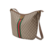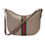 —the world of Ophidia continues to evolve, incorporating new shapes and silhouettes. The half-moon design mixes emblematic references with the unique charms of the shoulder bag, a popular Gucci model since the late '50s. Crafted in GG Supreme canvas, it's trimmed with textured leather and topped with Double G hardware.