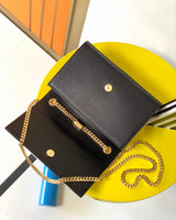 CLASSIC SAINT LAURENT MONOGRAM SHOULDER BAG MADE WITH METAL-FREE TANNED LEATHER AND ORGANIC COTTON LINING, DECORATED WITH METAL YSL INITIALS AND CHAIN TASSEL, FEATURING A CHAIN SHOULDER STRAP.