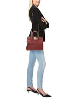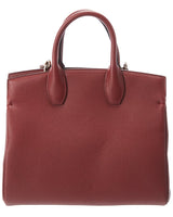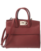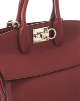 - Studio Small Leather Satchel In Carmine Red Leather With Gold-Tone Hardware, And Exterior Pocket