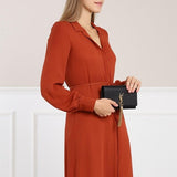 - detachable shoulder strap made of gold-coloured chain links with leather shoulder pad (approx. 125 cm)