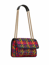Saint Laurent’s Niki shoulder bag is crafted in Italy from multicoloured-checked pink wool tweed, trimmed with glossy black leather and defined by the Cassandra monogram.